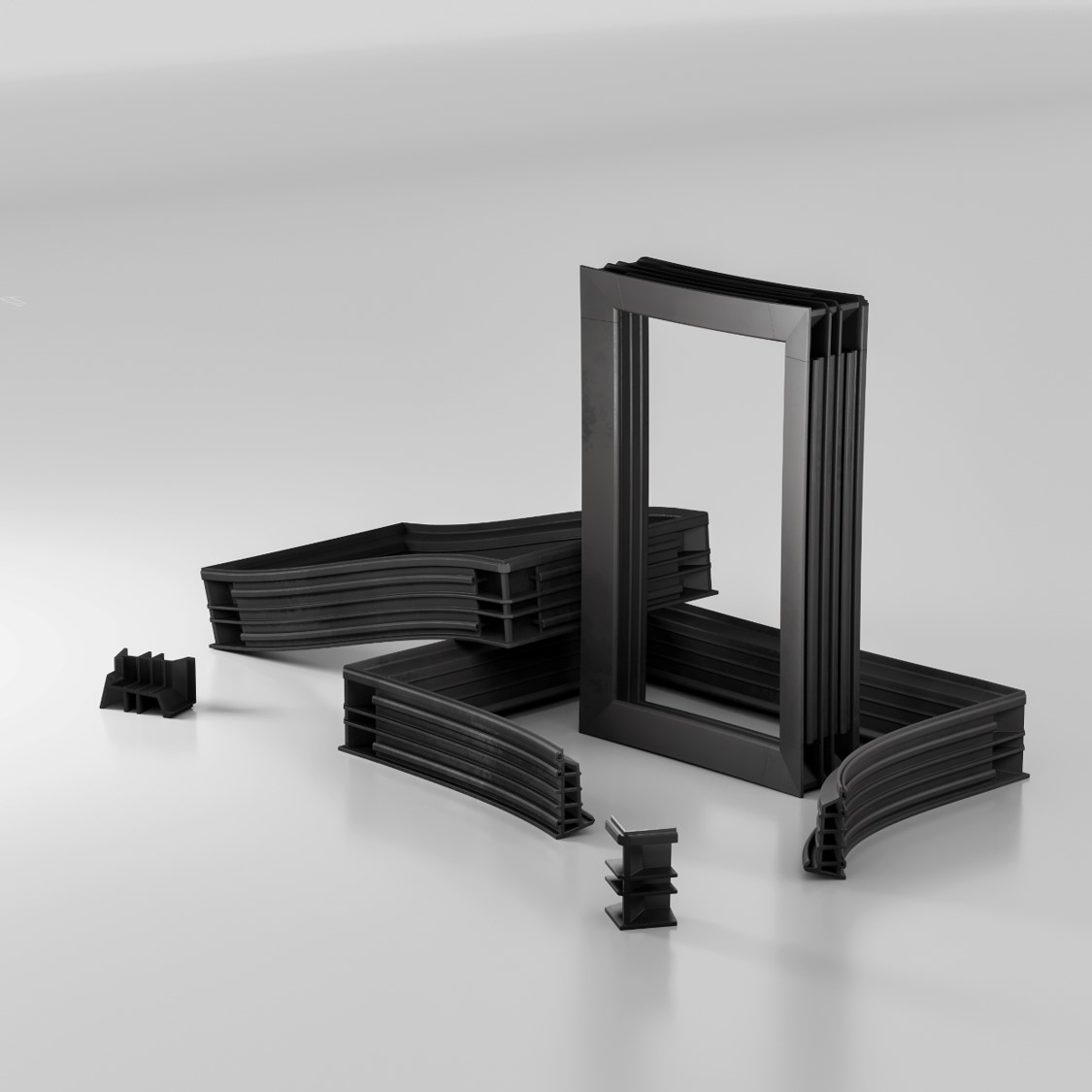 荣基创新开发的整框焊接胶条技术是一项新型的橡胶密封胶条连接工艺,通过将两端焊接形成封闭的环形结构,解决了胶条传统粘接方式容易出现的开裂问题。与常见的胶水粘接、模压拐角粘接不同,整框焊接胶条在门窗幕墙应用中提供更佳的气密、水密、隔音效果。传统粘接方式容易导致胶条松动和错位,降低密封性,而整框焊接胶条通过一体成型,保证了整体品质、形状、密度、性能的一致性,提供可靠的门窗密封效果。荣基不断创新工艺,目前已将焊接时间缩短至3—4分钟,成品率高达99%且美观度极高。