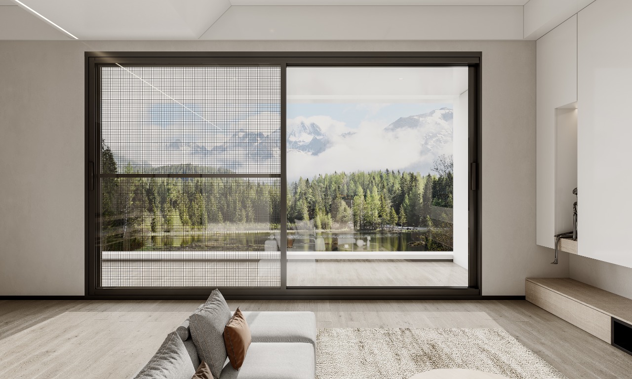 线条简约,纱网高透 推拉轻盈,顺畅舒适 门扇稳定,无晃动感 多道密封,隔声静谧