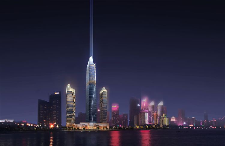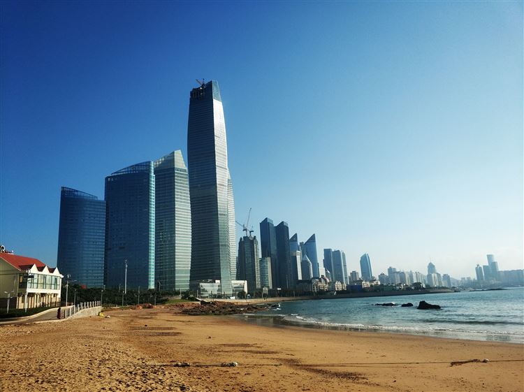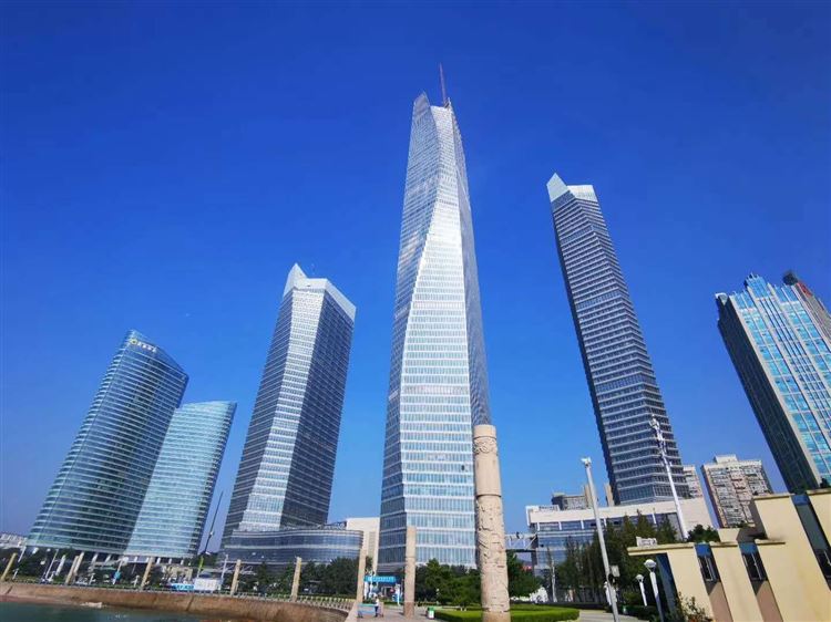作为青岛建制以来不折不扣的第一高楼,本项目位于青岛市,面朝大海,T1包括了一个五星酒店,一个企业会所,T3为酒店式公寓。设计的立意在于体现海天的历史传承,老海天的平面是六边形的,便以此为契机三栋主塔都采取了六边形平面布局,每层南北两个端点逐层沿不同方向扭转,沿竖向渐变旋转生长,衍生出有韵律的曲线,形成与大海波浪相呼应的充满张力和波动的形体,从而呈现了三塔自上而下不同波长的宛如大海的韵律美。