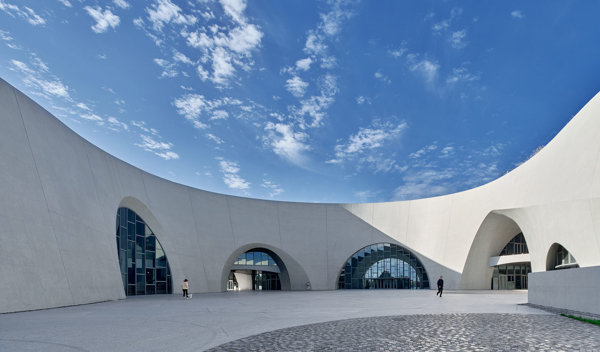 荣成市少年宫位于荣成市滨海新区,用地于海湖之间的开阔地带,风景资源得天独厚。项目由中国建筑设计研究院崔愷院士主持设计,益汇达负责清水混凝土施工,是当时国内已完工的施工难度最大、装饰结构一体化的异形双曲面艺术清水混凝土项目。 在建筑的外表面上,设计顺势将绿化引上屋面,屋顶花园成为湿地公园的有效延伸,不仅是青少年极具特色的活动空间,也为市民提供了又一座优美的“绿色公园”。