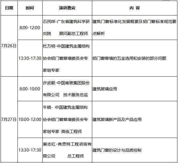7月26日-28日,2017年第一期的门窗培训班将在佛山举行。届时,国家权威科研院所、检测机构和知名企业高级技术人员将亲临培训班现场,带来关于建筑门窗制作、安装、技术标准等的精彩讲解。学员通过全部课程及考核,还可以获得权威部门颁发的专业资格证书。