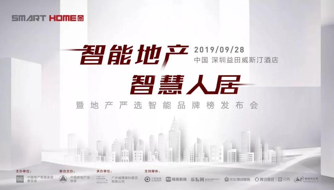 2019年9月28日,由中国房地产业协会、中国地产智能家居展览会主办,广州城博建科展览有限公司承办的「智能地产·智慧人居,暨地产严选智能品牌榜发布会」邀请了全国top20的智能家居企业为现场的地产商答疑解惑。
