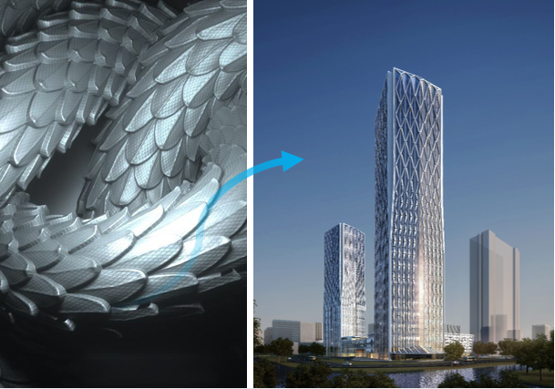 ”龙鳞“与幕墙铝板造型对比图