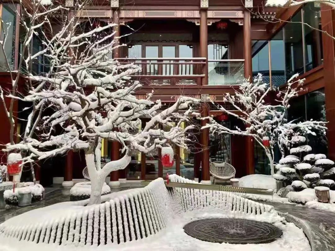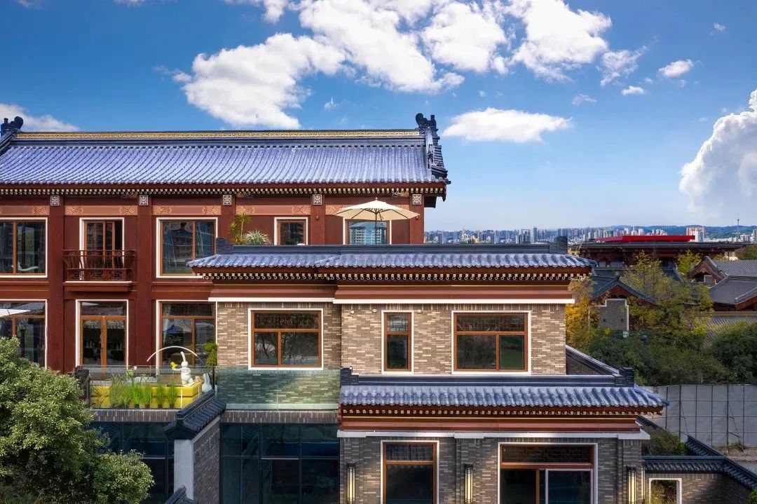 在建筑的整体设计中,木纤维板应用于建筑的外立面及包梁包柱部位,使其建筑整体充满了中式元素还原传统的中式合院。木纤维板相对传统材料如防腐木具有很强的优势,可省去后期木腊油维护,实现雨水自洁及真实木纹质感双重体验。
