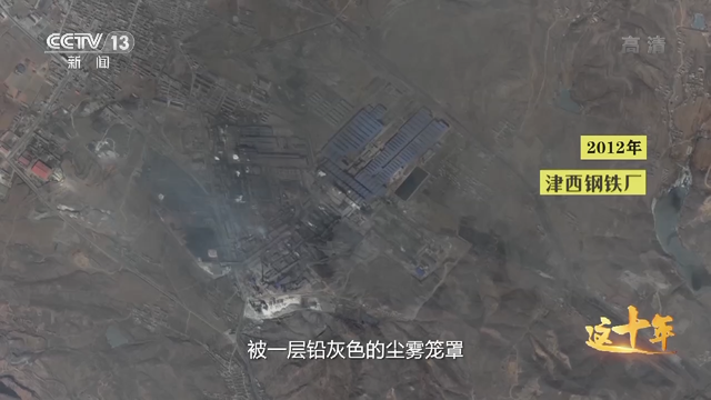 在卫星拍摄的图片上看出来,十年前的钢铁厂区被一层铅灰色的尘雾笼罩。而到了2021年3月,厂区、厂房、配套设施,清晰可见。