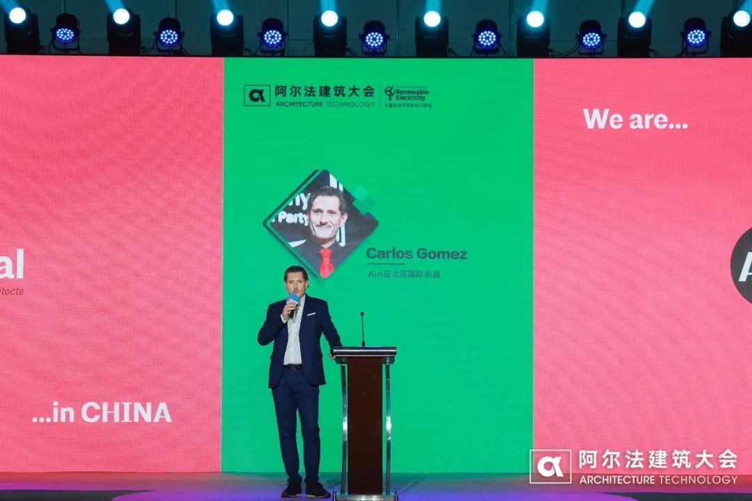 AIA亚太区国际总监Carlos Gomez在发表中提及,过去25到30年中国一直在发展,发展的速度也是人类社会从来没有过的高速发展,这将会产生一定的后果,就是碳排放以及它的峰值。中国要在2060年达到碳中和作为目标,建筑师代表了建筑协会,我们就要承担这个责任,来实现目标,打造更多节能建筑。