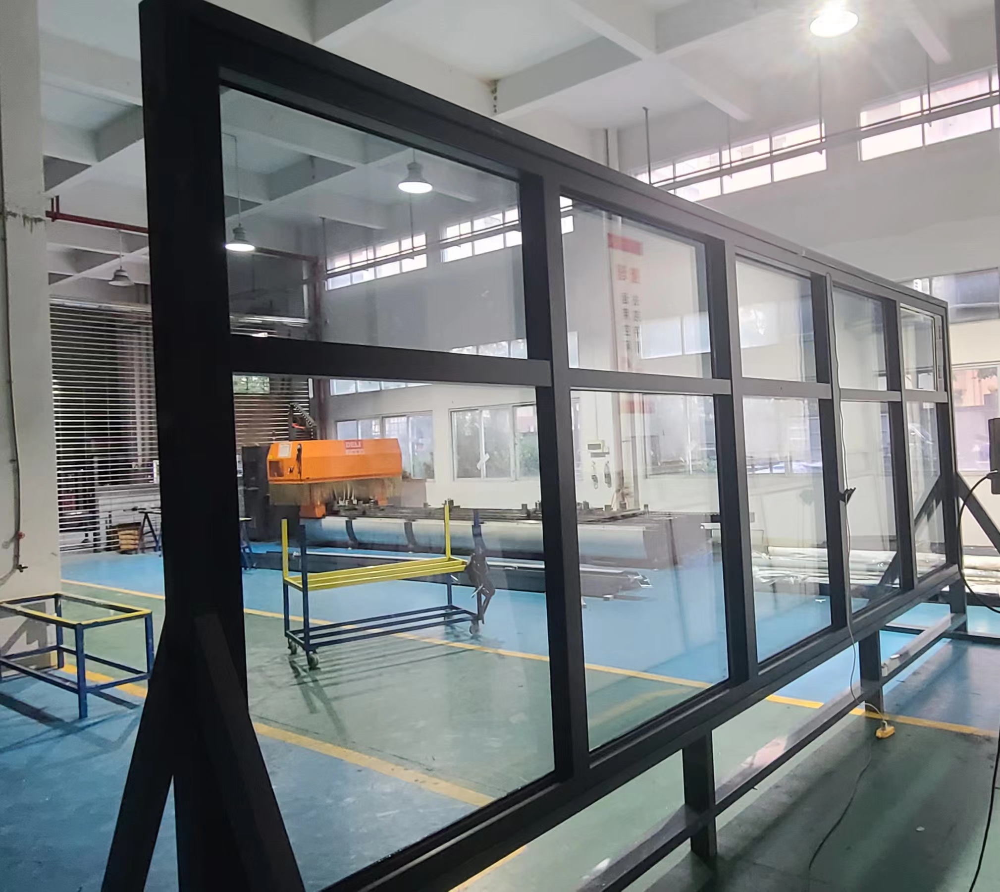 优化隔热构造,由于玻璃遮挡住铝材的外表面,隔绝热量的传递;在玻璃包边与主框架结合处垫上橡胶垫,加强隔热效果;玻璃包边的侧面穿上橡胶条,提高气密性能;玻璃四周设置有铝合金包边构造,使玻璃永久不掉落,安全性更高;包边外观尺寸可定制化,实现明框和隐框视觉效果,满足建筑需求。