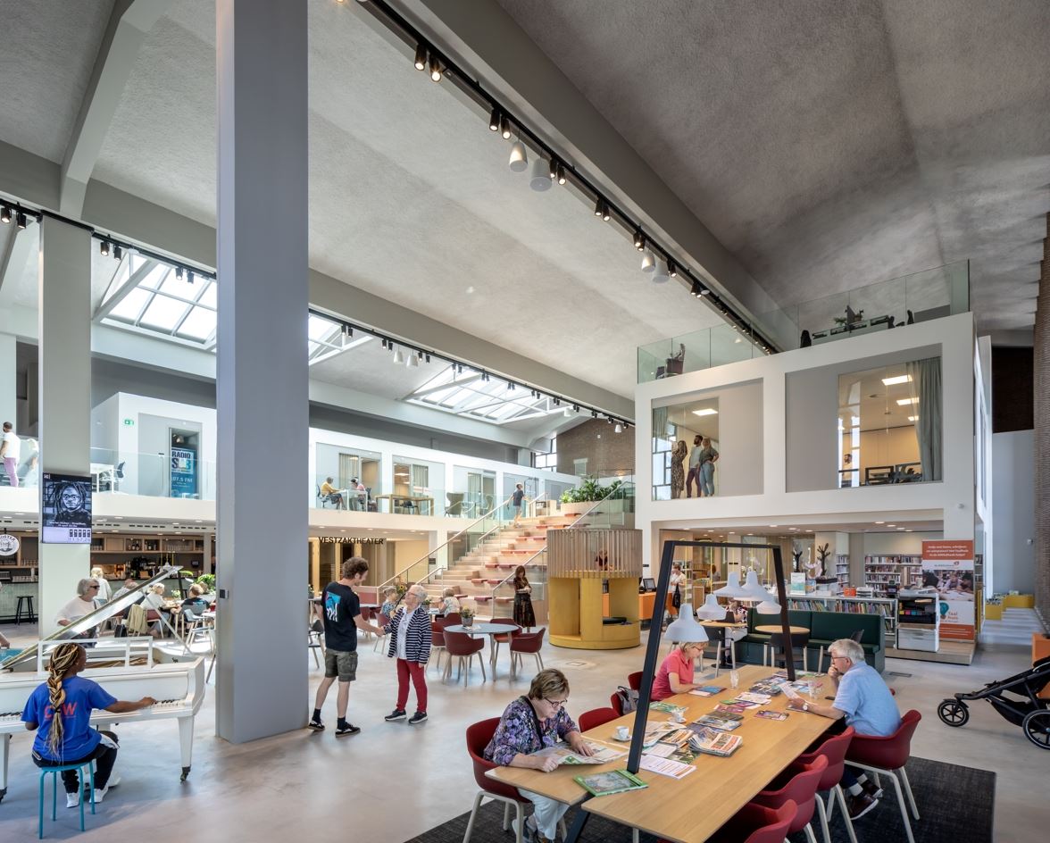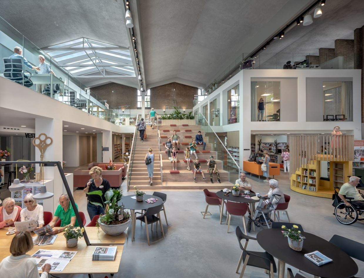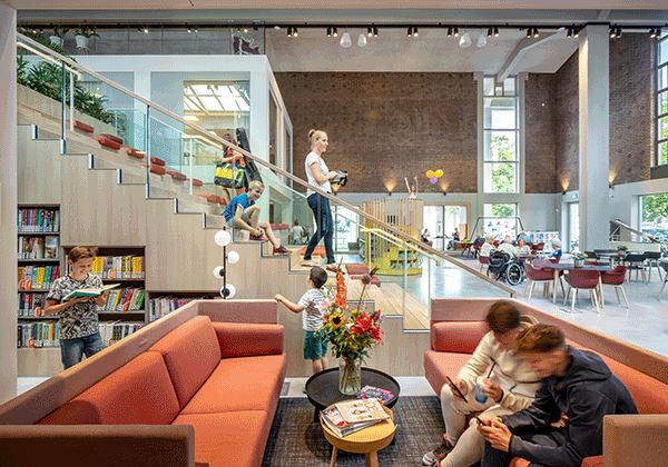 如果想维持这个建筑的核心地位,就需要对外开放,拥有明确的功能,对人们有实际用处,现在它变成了一个可以让镇上的人碰面交流的地方,这里有图书馆,剧院,咖啡厅,开放的工作区为多种公共功能提供服务。