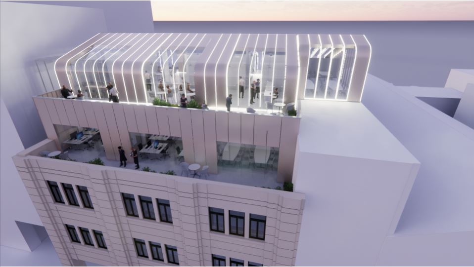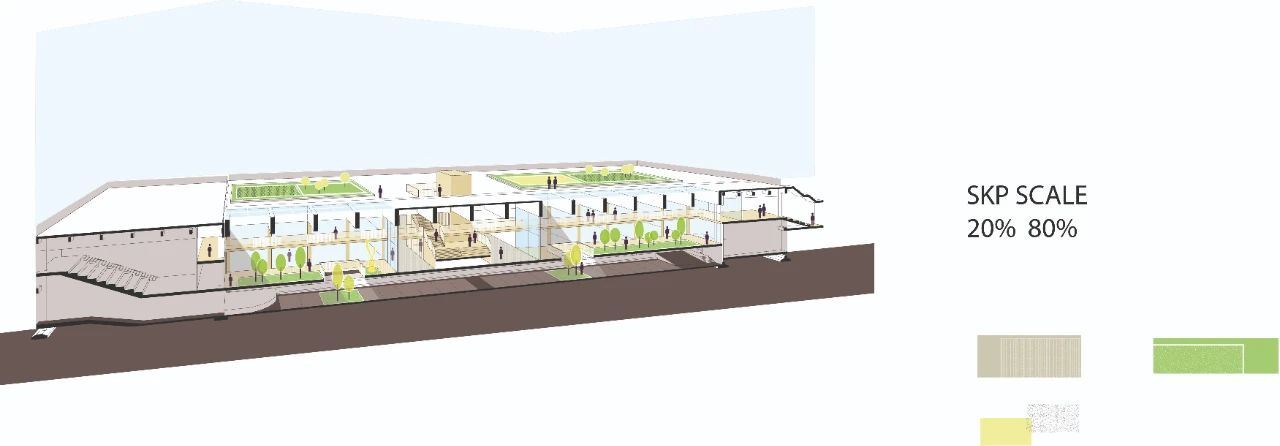 设计方案大部分是人行策略,在大楼与后面的小楼之间,只需要将建筑突出的部分拆除,设计一个出口、走廊或廊道,将建筑连结在一起为行人提供空间。