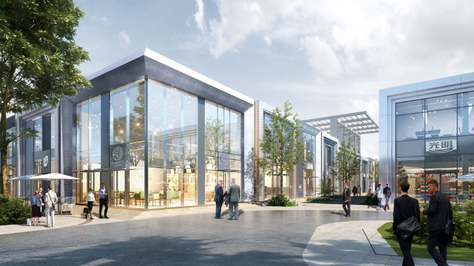 考虑到光明集团旗下拥有70-80个品牌,他们希望在园区里展示这些品牌,比如打造一些旗舰店,服务B2B渠道的销售。因此这里将更多地变成了一个拥有商业、餐饮、食品研发、展示及其他公共功能的园区。