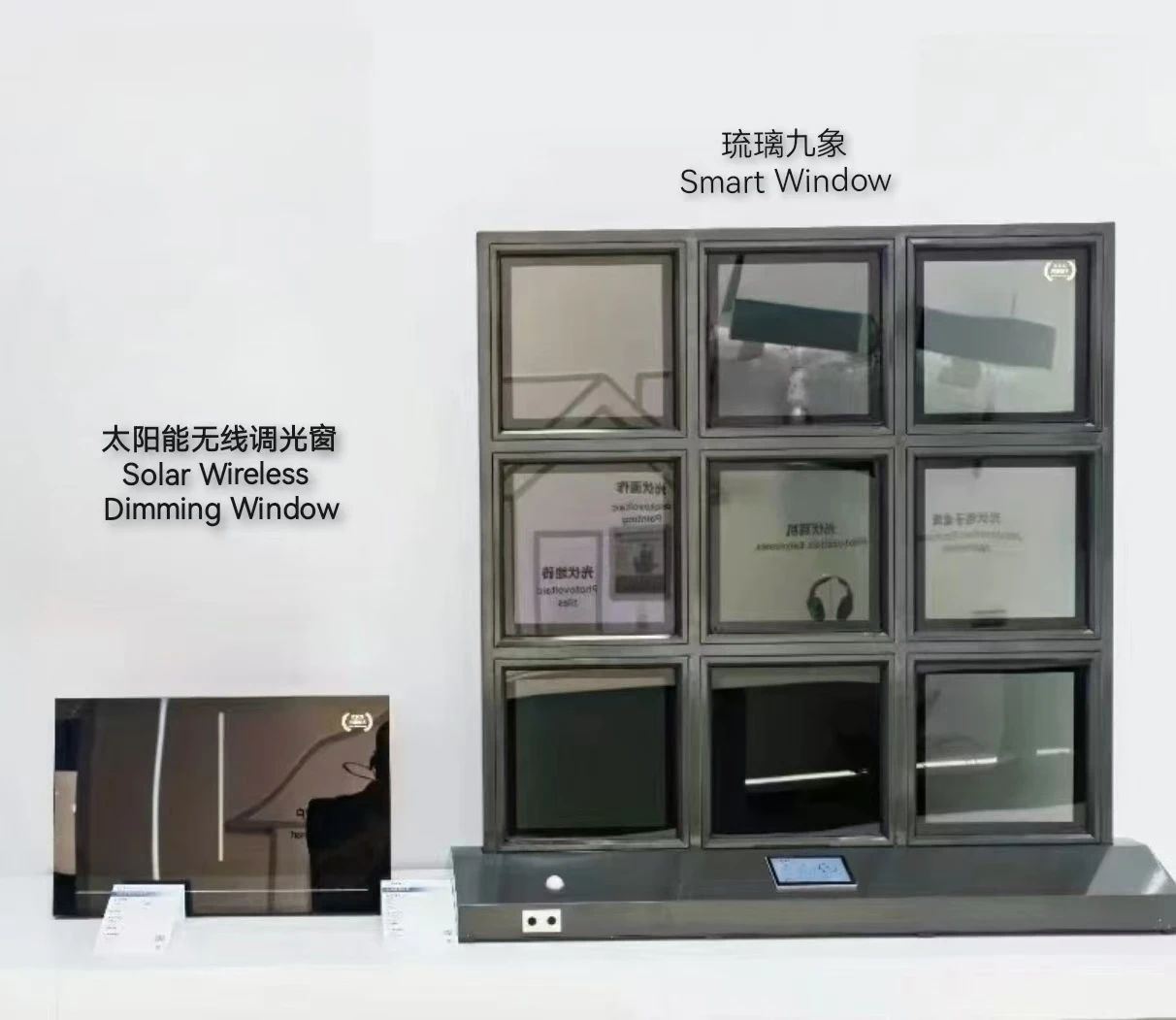 我们本次参展主要是展出搭载京东方光幕技术的2款展品,分别是琉璃九象智能调光窗和太阳能无线调光窗。