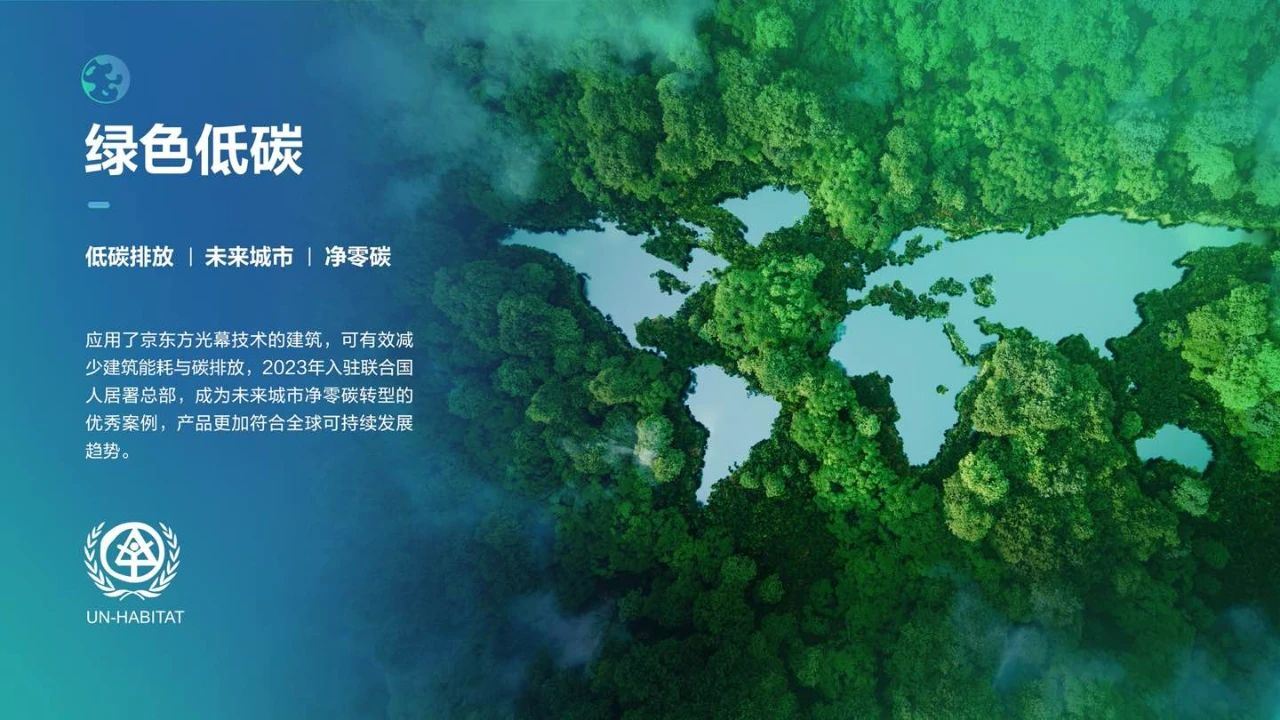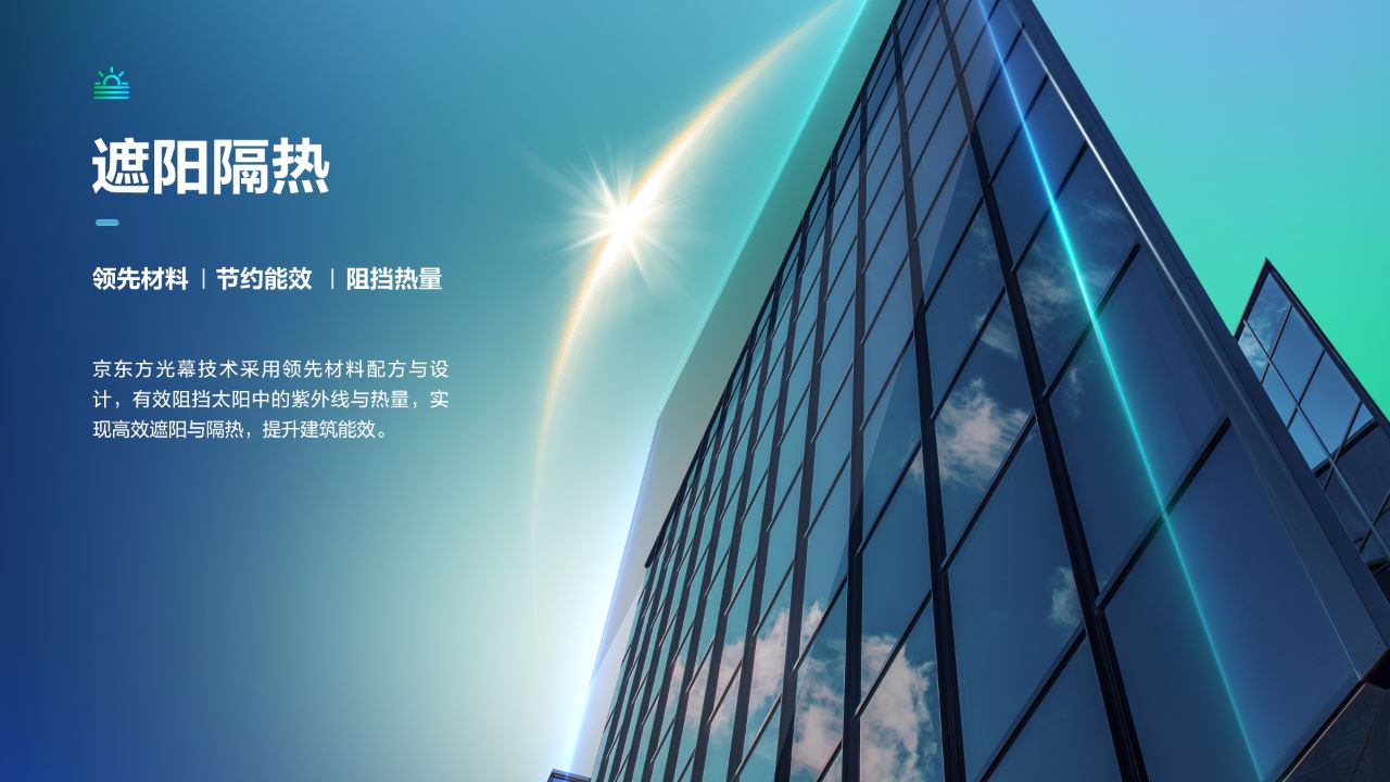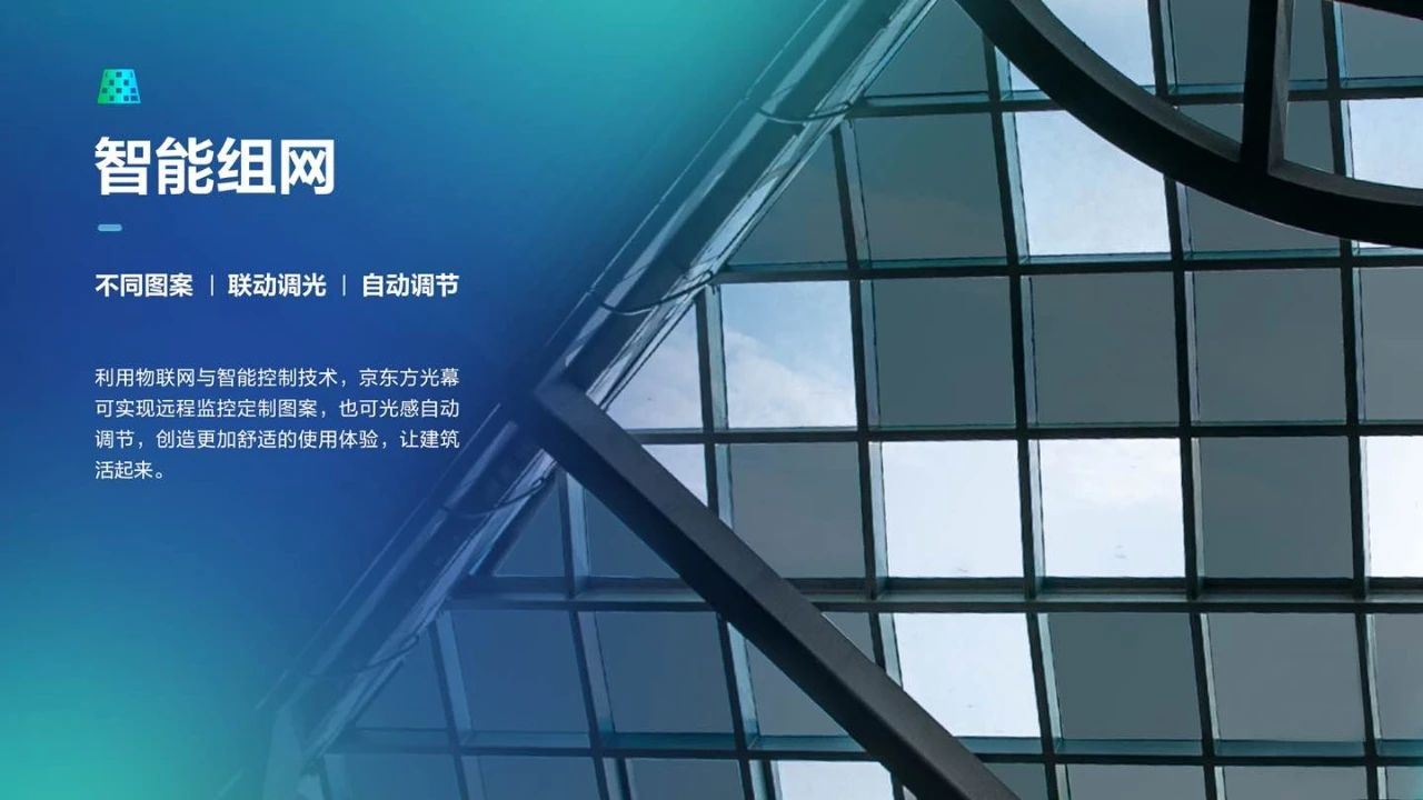 京东方光幕技术旨在为建筑市场提供一个低碳、智能、舒适的建材产品选择。