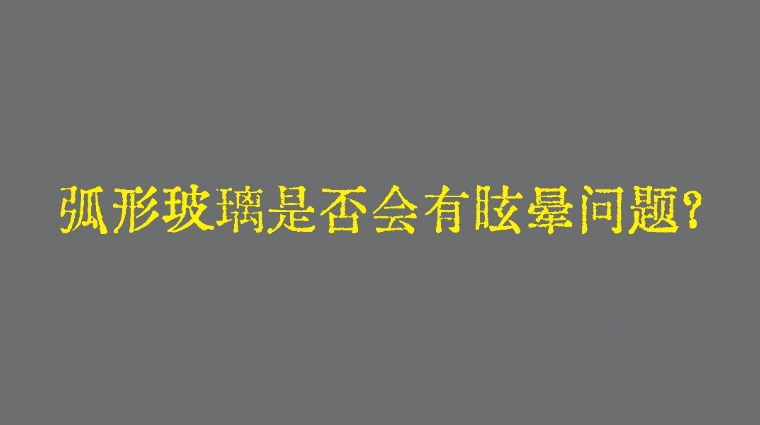 我们现在设计的过程当中,其实很多建筑的外立面都会遇到弧形的玻璃。那么关于弧形的玻璃,业主也会发现,它会产生一个眩晕的效果。所以也会经常问我们这个眩晕的效果如何来解决。首先就是弧形玻璃它为什么会产生这个眩晕呢?那因为现在多层玻璃在复合之后,其实是会有一个叠影的效果,所以我们在室内就会有一种眩晕感。但是什么时候会觉得眩晕感比较强,又什么时候觉得眩晕感比较弱呢?当我们在室外的光线是强光的情况下,室内能看到的投影就会少,反射的投影就会少。这个时候就会觉得这个投影好像对眩晕就不怎么明显。如果说室外的光线弱,室内的光线强,比如说到了晚上的时候,室外是天黑,室内开了灯光,那么室内就会产生比较明显的眩晕感,而且人在靠近这个圆弧的圆心的位置可能晃动的时候,看到的眩晕感会更加的明显。