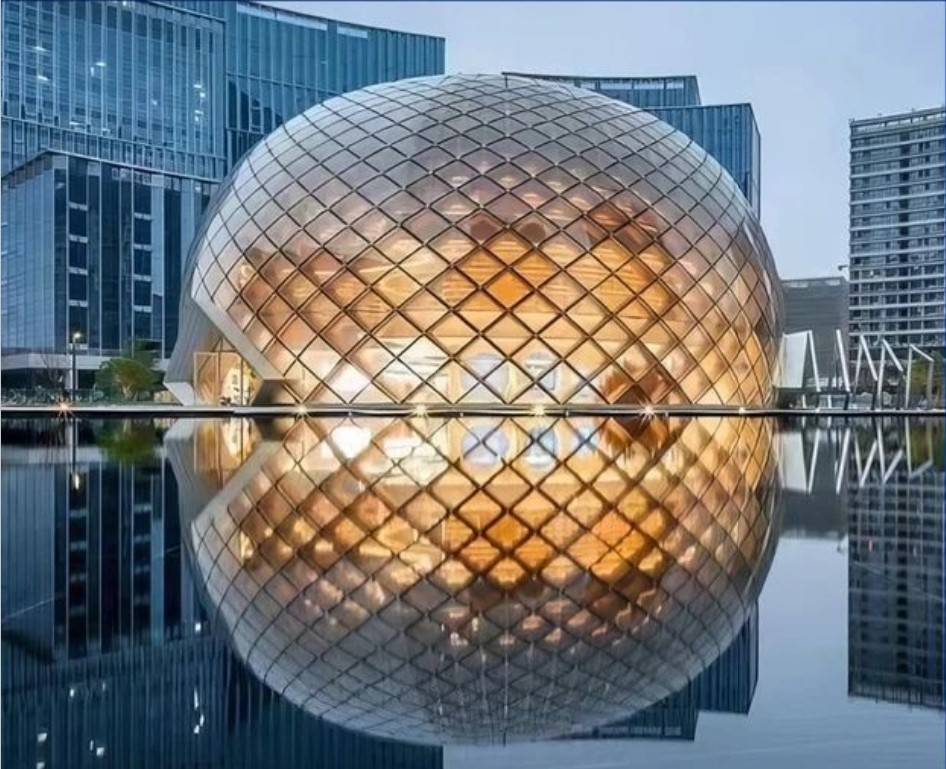 节能玻璃复杂曲面可定制加工:双曲、多曲节能玻璃能够制作成非常复杂的曲面形状,这些形状不仅包括简单的弯曲,还包括复杂的双曲面或多曲面。最大尺寸: 2440x5000mm, 最大拱高:500mm, 最小半径 350mm;