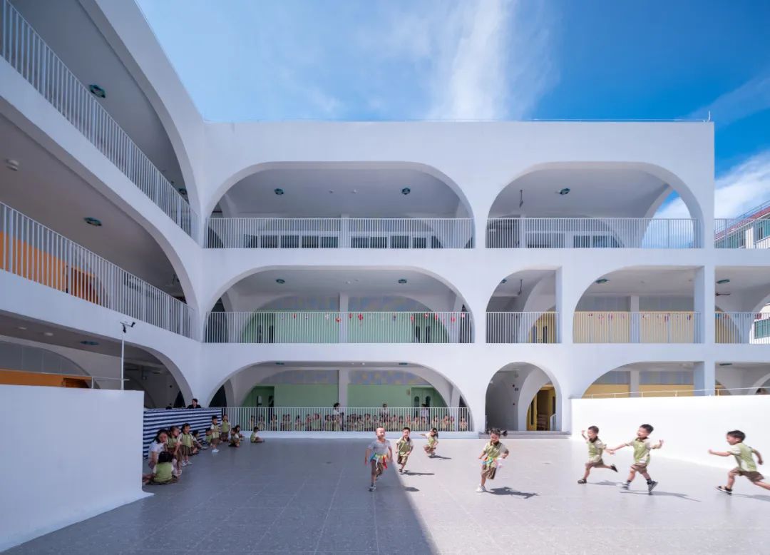 “有温度的建筑”绝非形式修辞,而是具象化的体验集合:气候舒适的课室、举手可达的活动场地、通透却不刺眼的光线、孩子们数汽车时的专注神情、老师们早操比赛的活力…… 当造价与场地限制被转化为创新动力,当建筑语言服务于 “人的感受”,温度便生长于材料与空间的缝隙中。