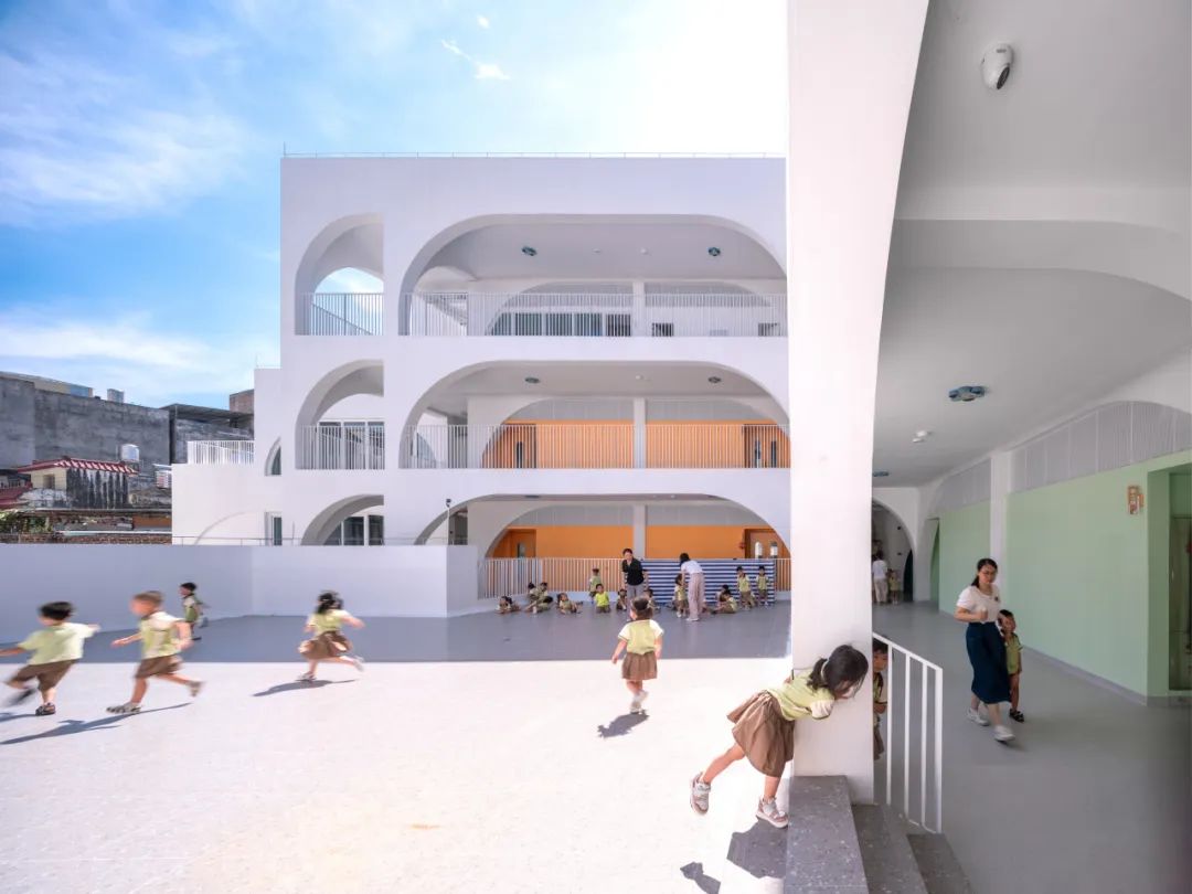 更意外的是建筑对城市身份的重塑。当地居民将其比作“白宫”,并非形态的形似,而是其作为“城市中心”的仪式感:不同于博物馆或政府大楼的威严,幼儿园以孩童的欢笑声定义中心,让教育建筑成为传递温度的城市名片。路人们驻足观看的,不仅是建筑形态,更是被激活的公共生活场景。
