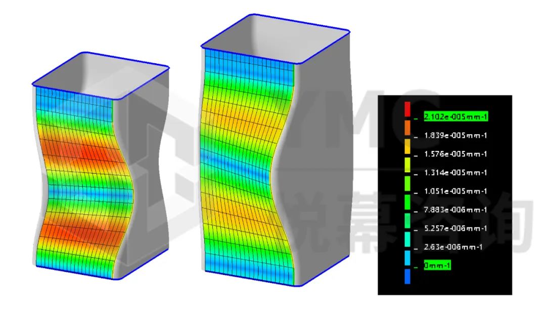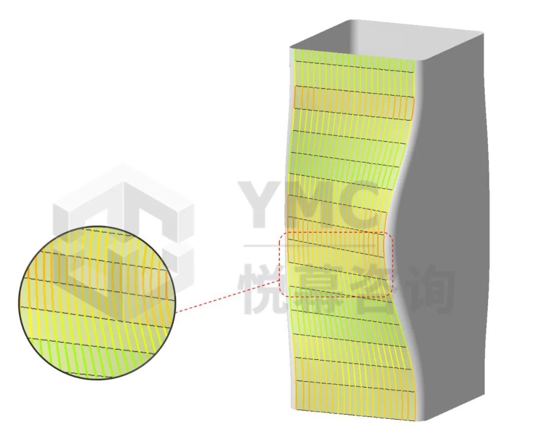 2、曲率分析量化了曲面双曲程度,为面板选型(直板、单曲、双曲)提供依据。