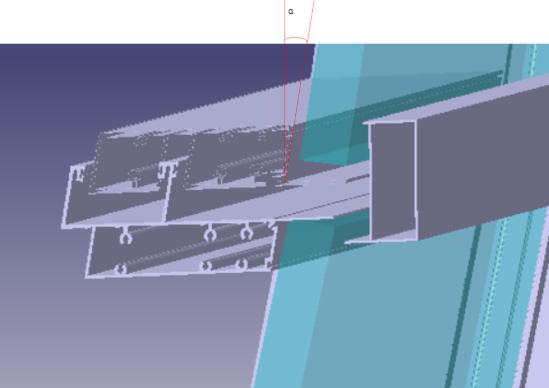 3、倾角分析显示玻璃倾角最大 13°,虽无需按采光顶设计,但需采用夹层玻璃。