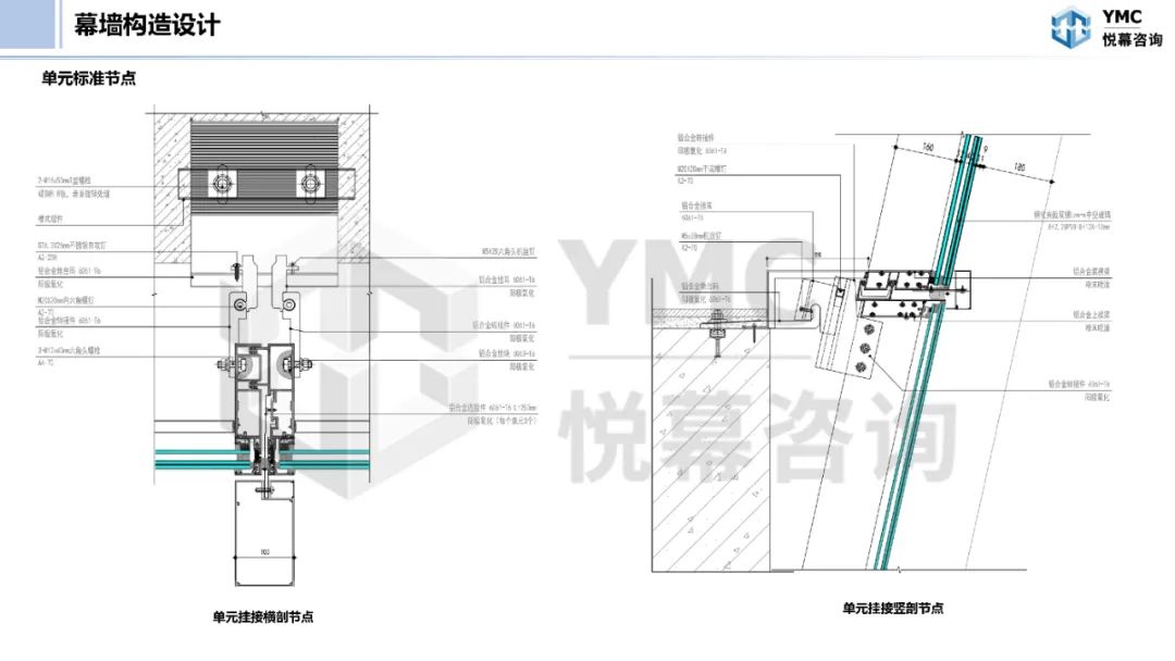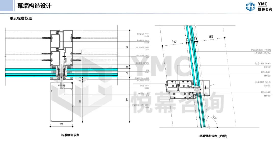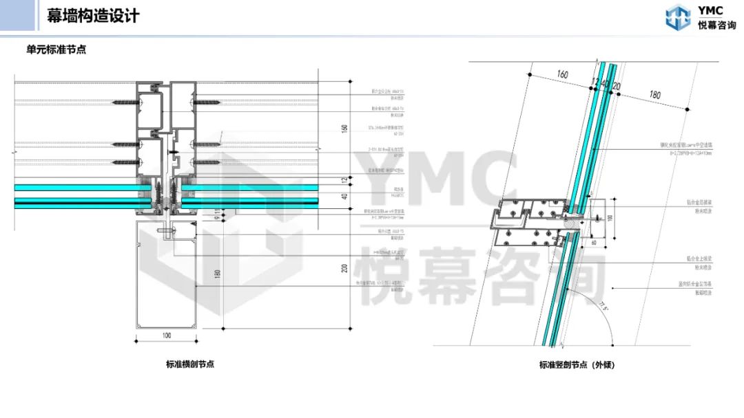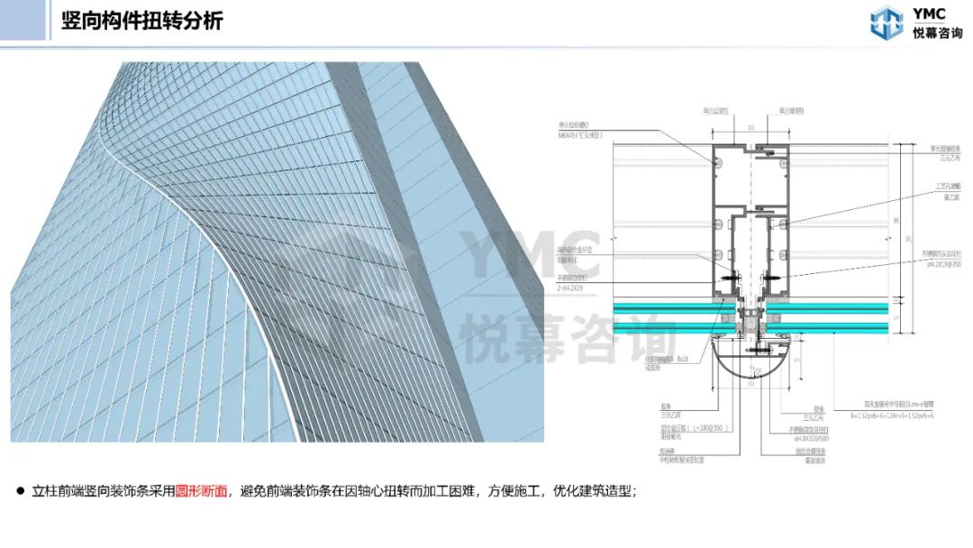复杂形态幕墙的构造设计需满足多维度调节需求。成都项目的跨层排水、佛山项目的 11 套横梁模具、重庆项目的转动式附框,均通过构造创新实现了前后、左右、角度及轴心扭转的调节。其中,“恒定几何元素” 原则(如横梁关键点与立柱平行关系)是控制构造复杂度的关键。