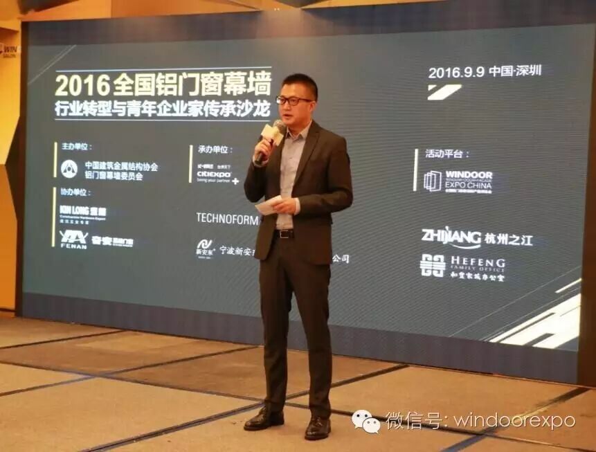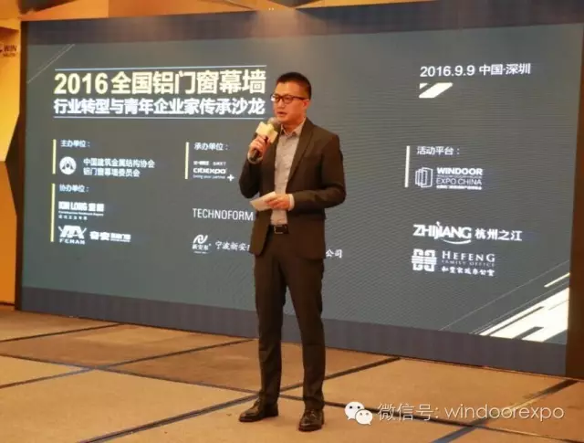 中国建筑金属结构协会副秘书长黄圻先生在《门窗幕墙行业的升级转型与机遇》的主题演讲中指出铝合金门窗、相关配套等企业,民营企业(大部分是家族企业)占到了98.5%以上,传承迫在眉睫。行业和企业历经了35年的发展,当前正外在经济结构调整时期。行业需要变革,企业需要创新,家族需要接班。思想开放的新一代的介入给铝合金幕墙行业注入新的活力。