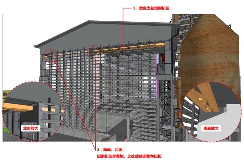 许多老旧建筑主体结构无法满足新幕墙系统的荷载要求,需进行局部加固甚至整体调整。如杭钢遗址改造中,利用原有吊车梁与新增钢桁架协同受力,才实现大跨度幕墙的安装。