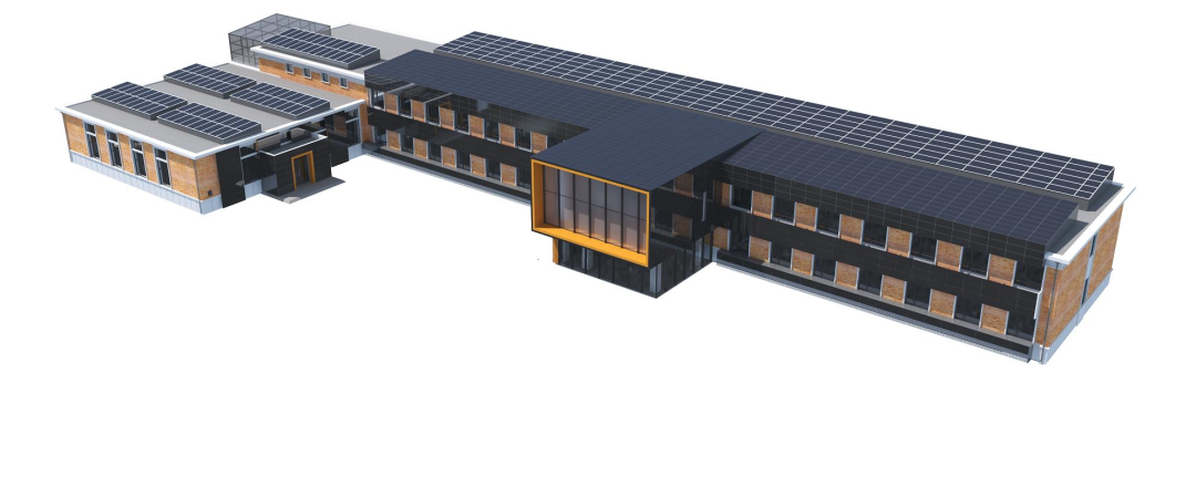 ▲改造后的光电楼共铺设了1500平方米的光电板,光伏装机容量达到235kWp,年发电量约为220,000kWh,净产能约25,000kWh。