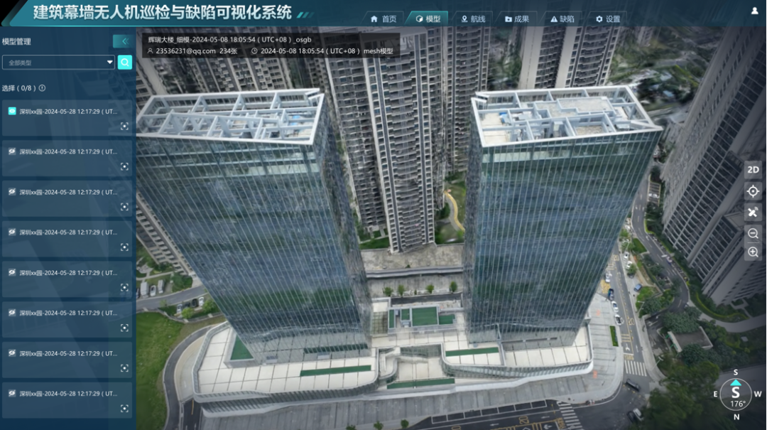中建深装基于人工智能与大模型开发了建筑幕墙无人机巡检系统,具备自适应特征航线规划、全流程自主巡检作业、沉浸式 AI 三维建模、视觉大模型缺陷识别、板块分割与缺陷定位、幕墙缺陷大数据分析六大核心功能,实现了对建筑幕墙表观缺陷的智能检测和可视化展示。