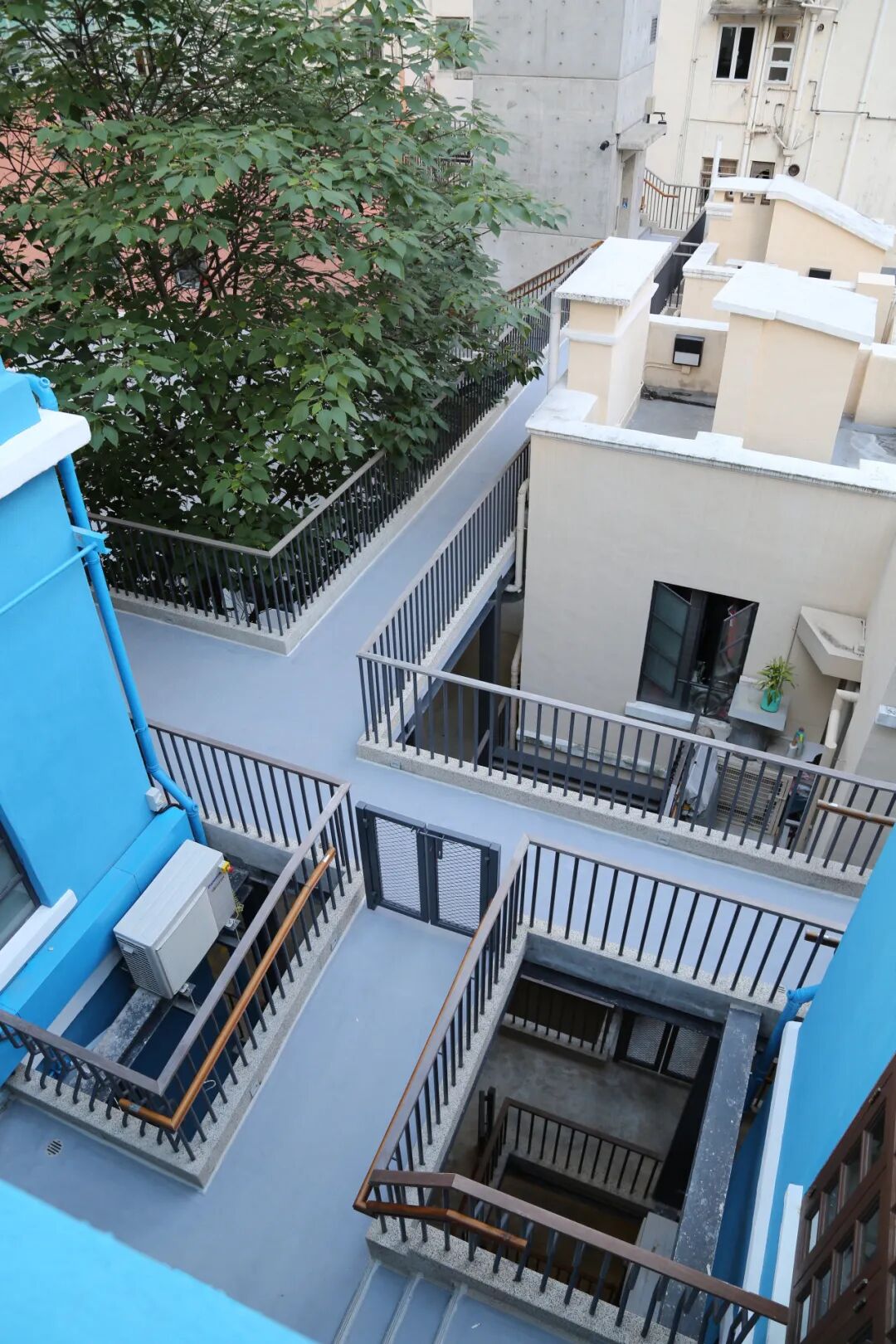 蓝屋最动人的改变,不是硬件的升级,而是 “空间关系” 的重构。复修前,蓝、黄、橙三座唐楼 “背对背” 而立,居民各走各的门,各用各的空间,“住了十几年不认识邻居” 是常态。而现在,一个共用花园、一条连桥、一面白墙,彻底打破了这种孤立。