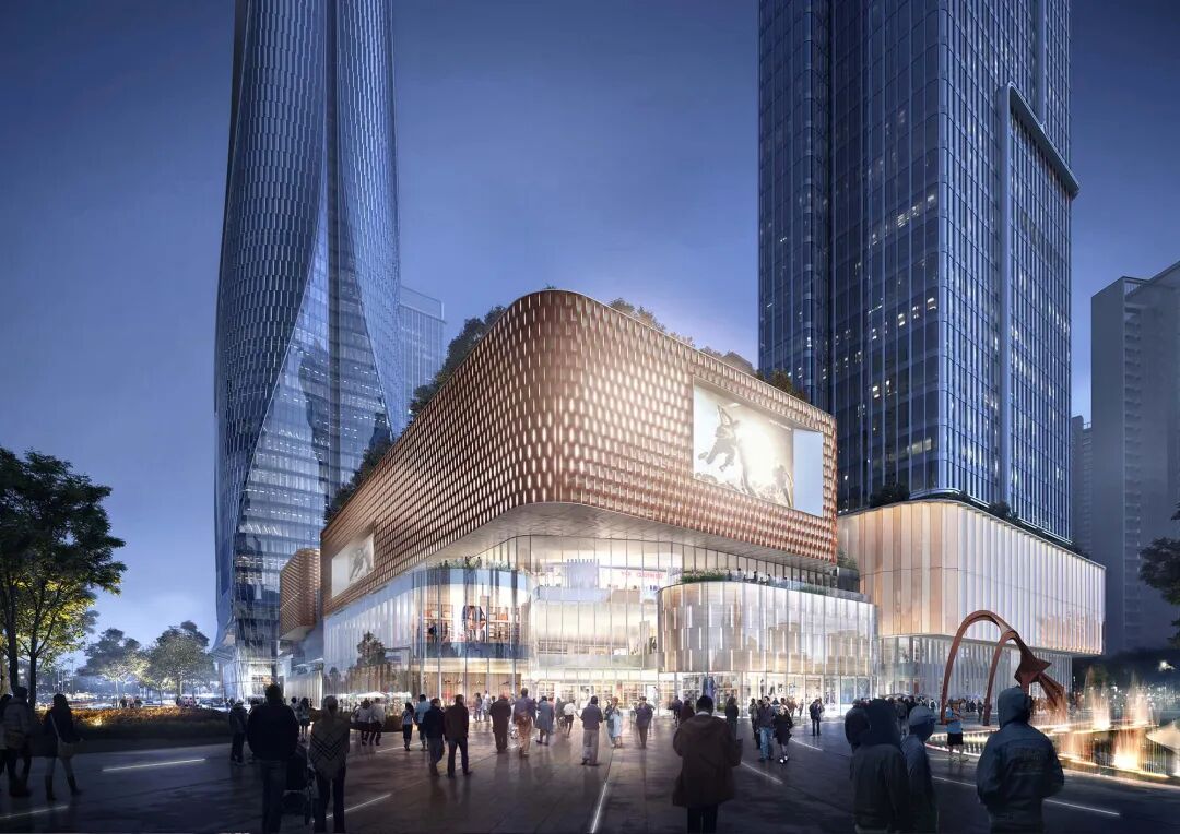 不同于传统的以商业为主导的高密度城市综合体,杭州世茂智慧之门对于新型城市综合体进行了积极的探索与尝试 , 力图优化市民性的开 放空间。