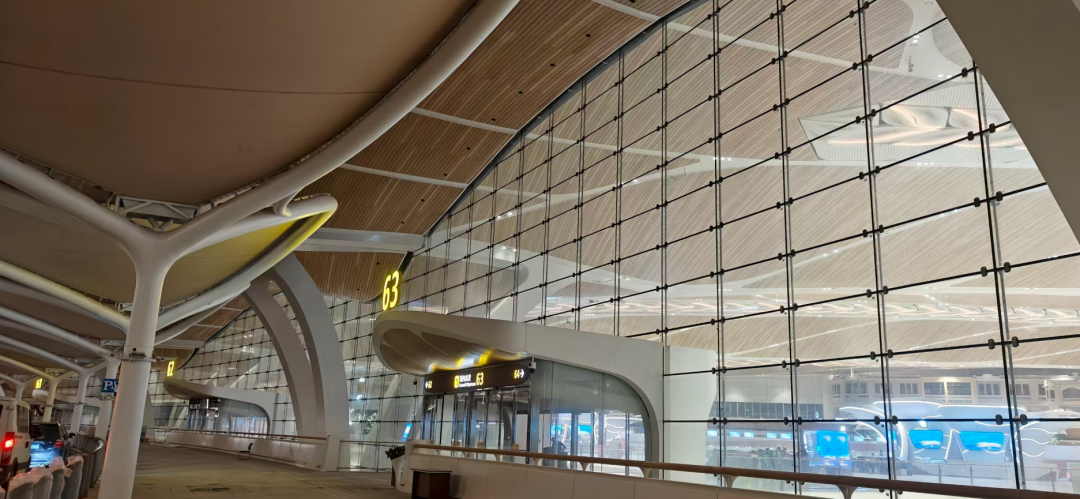 这种设计并非单纯的美学表达,更暗藏对 “通透感” 的追求。作为机场航站楼,通透的幕墙能减少室内照明能耗,同时让旅客在室内就能感受到自然光线的变化,缓解长时间候机的压抑感 —— 文化符号与实用功能,在此实现了无缝融合。