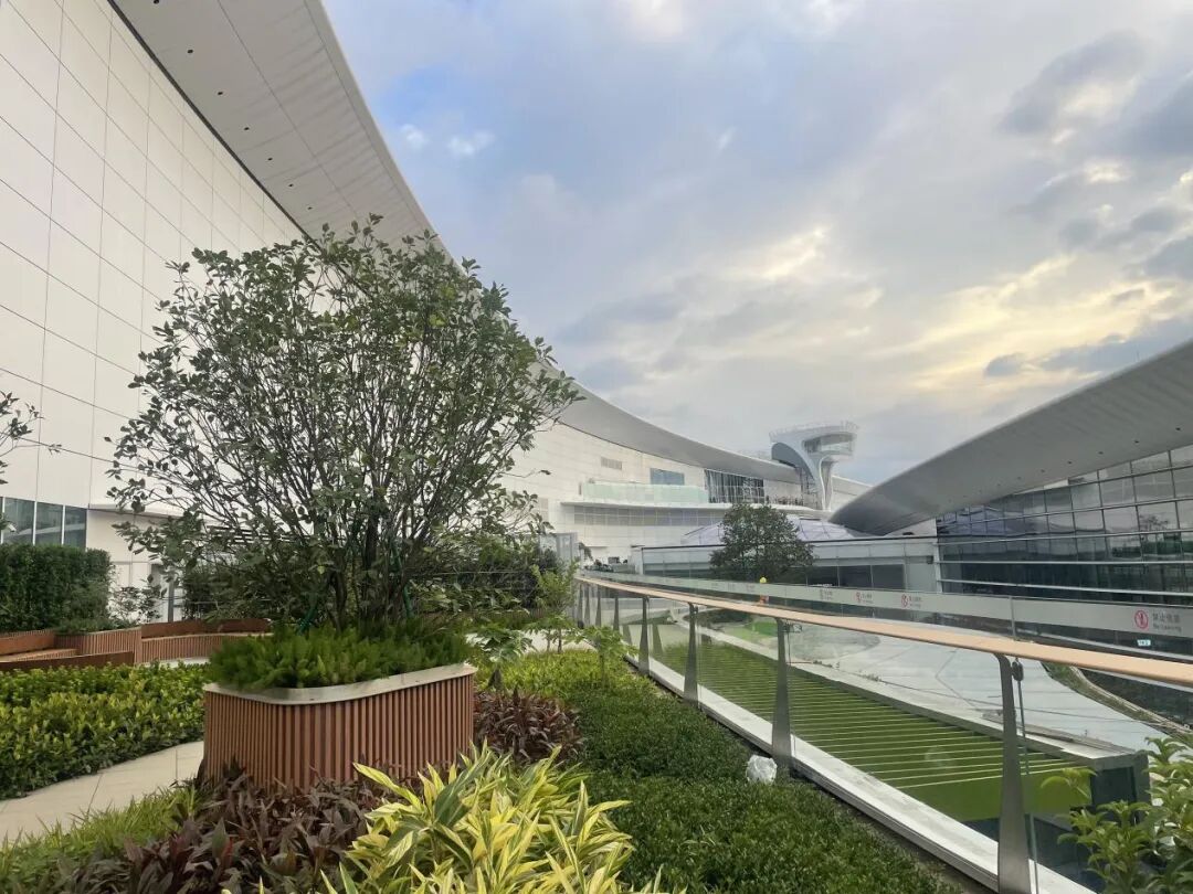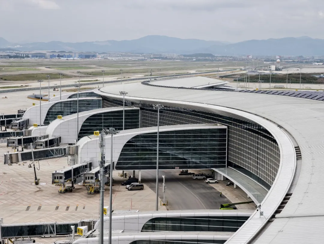 18 个登机桥的配套幕墙与高处的瞭望台设计,整个“羊城花冠”的形态被完整勾勒,从任何角度看都极具辨识度。