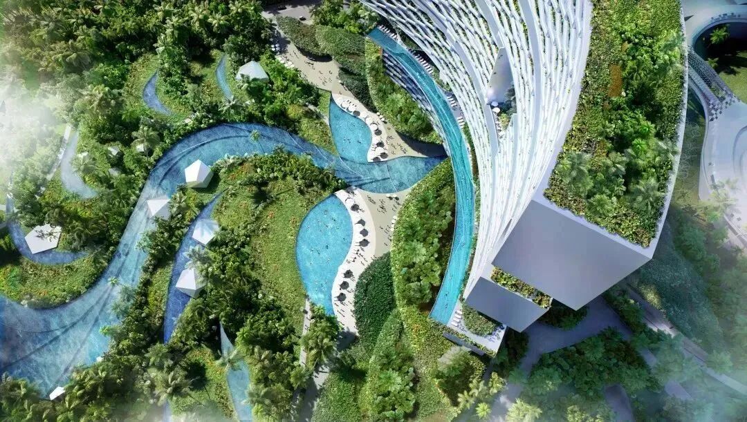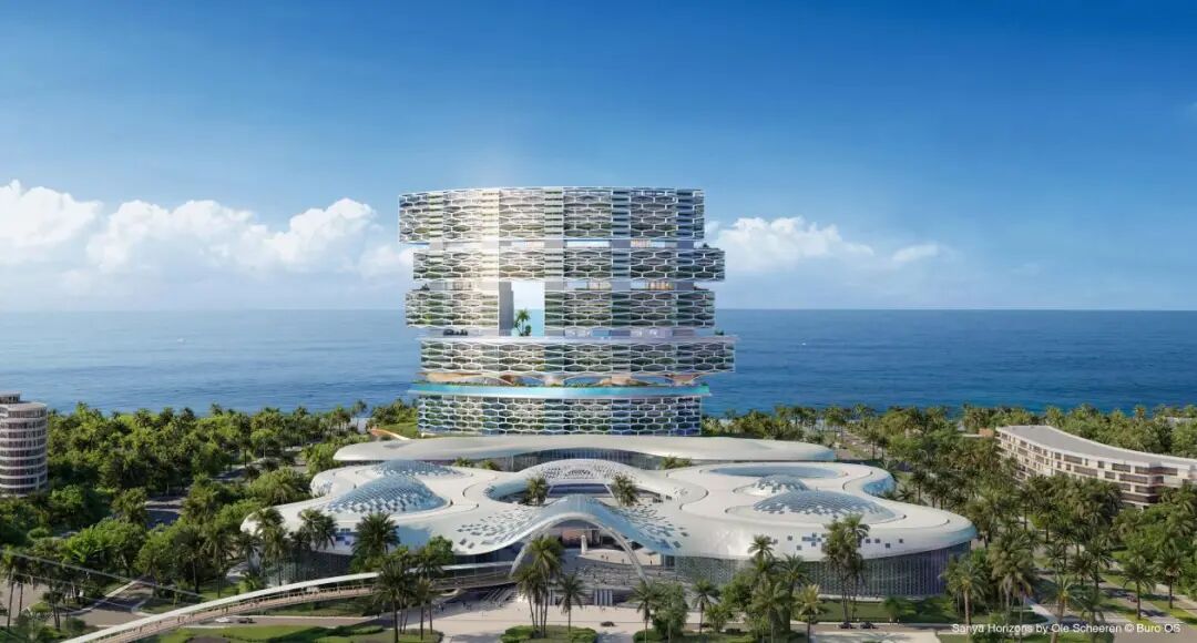 项目位于海南三亚海棠湾,坐落于 83,500 多平方米植被繁茂的滨海地段,总建筑面积约 13.97 万平方米,高 160 米,由两大酒店组成 —— 三亚海棠湾丽晶酒店和三亚海棠湾英迪格酒店。这座休闲度假综合体勾勒出三亚海岸 “新地平线”,旨在提升人在自然风貌中的体验。整体以 “弯月抱海” 的流线造型拥抱自然,最大化展现海天相接的壮阔视野。