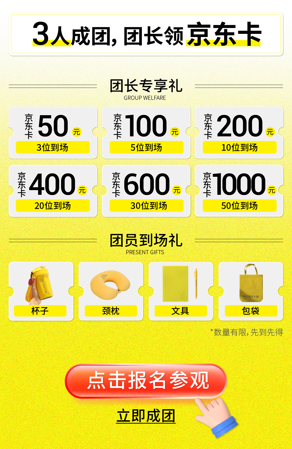 邀好友一起参观展会,可领取京东卡等福利,欢迎更多行业同仁一起见证更多新设计、新技术、新产品、新材料,点击下方图片立即报名参观。