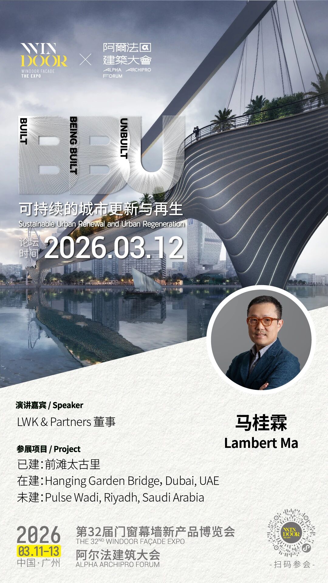 【阿尔法建筑大会】正式定档于 2026年3月11-13日 广州,每年邀请全球业主、建筑师、幕墙设计/施工单位领军人物,围绕热门趋势和专业议题展开深度分享。通过国际视角和多元展区,助力行业在全球语境下持续发展。