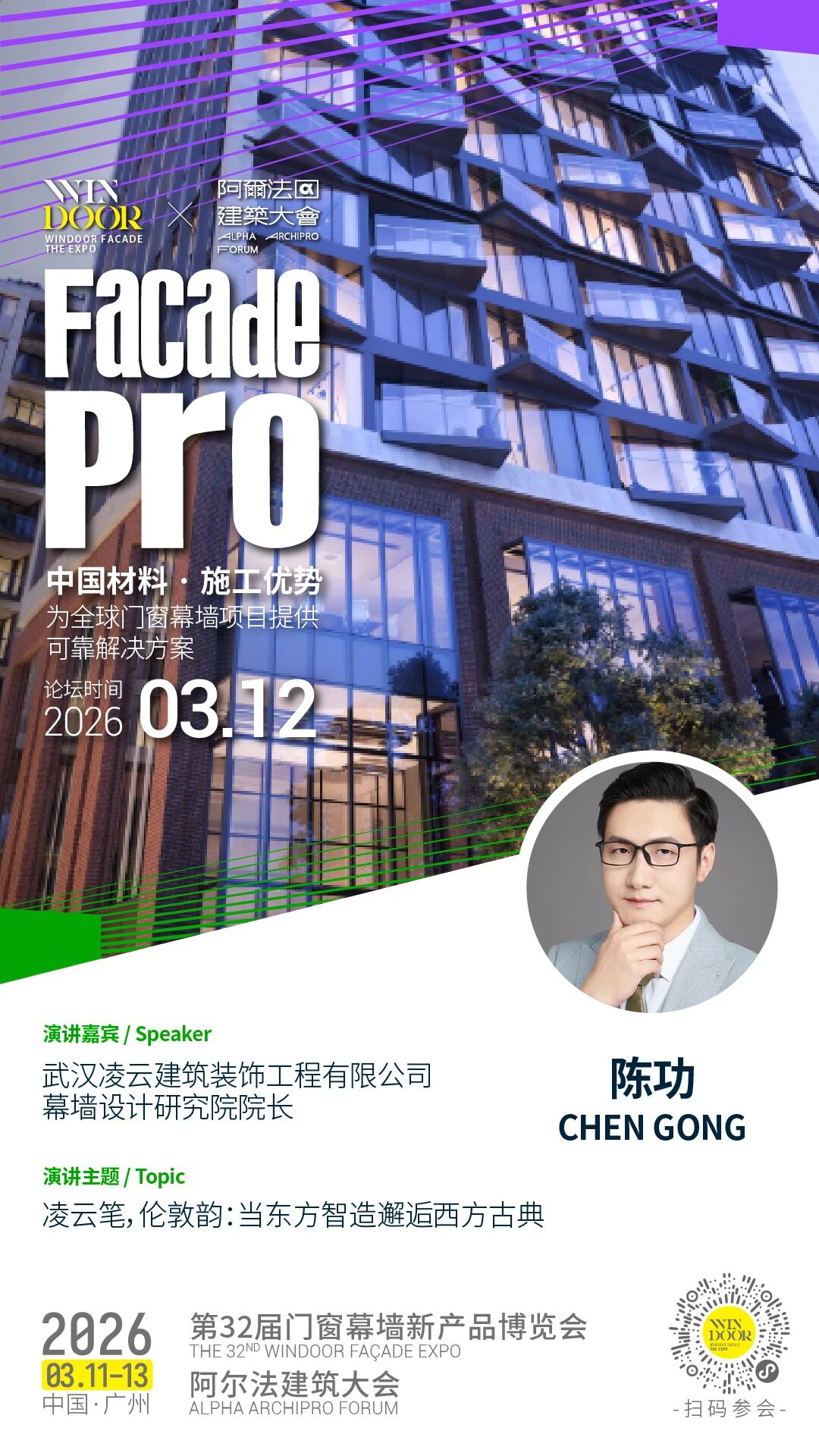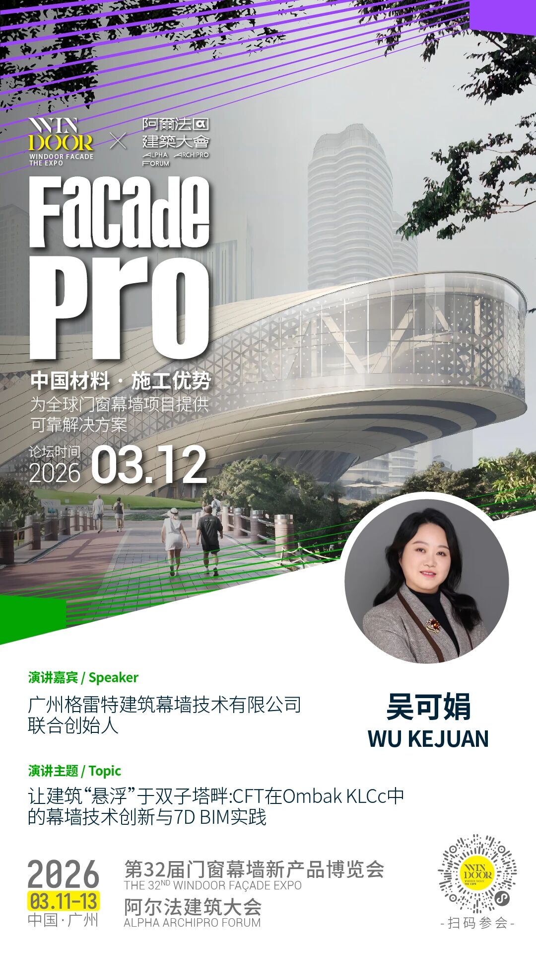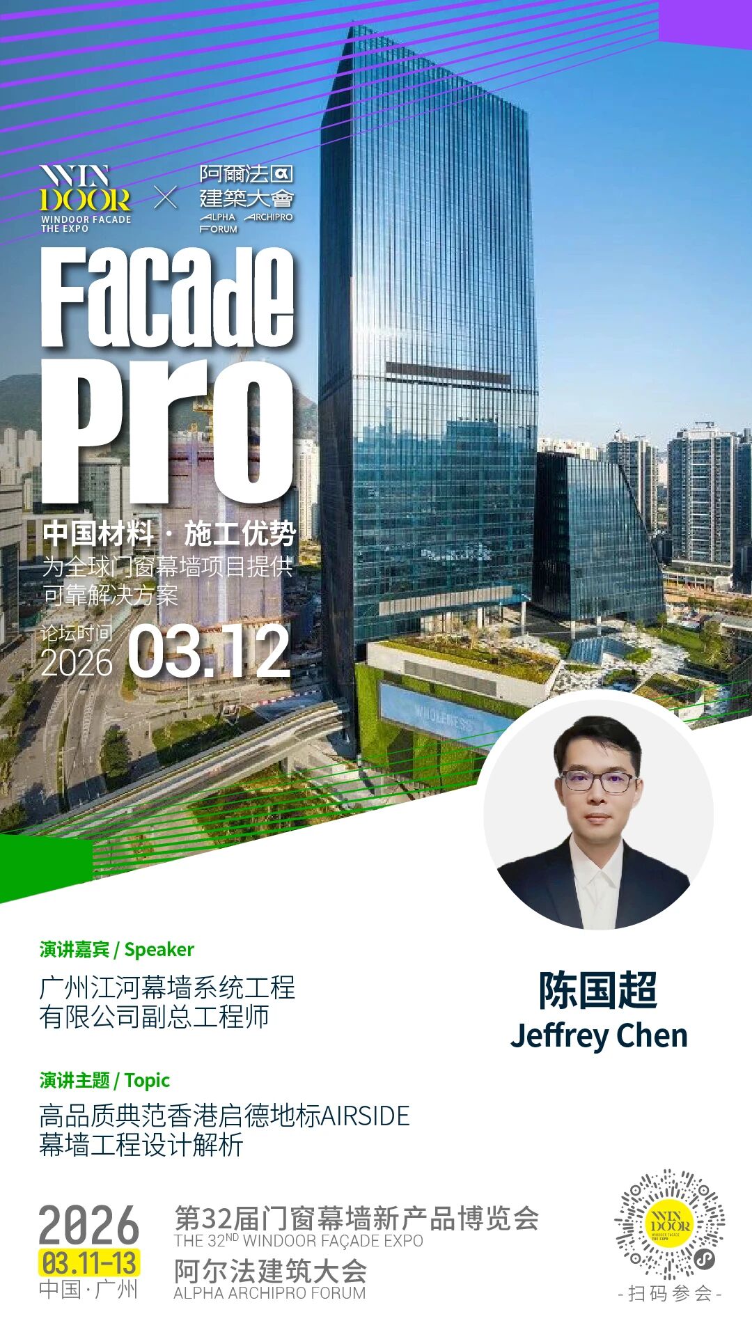 【阿尔法建筑大会】正式定档于2026年3月11-13日广州,每年邀请全球业主、建筑师、幕墙设计与施工单位、门窗行业领军人物,围绕热门趋势和专业议题展开深度分享。通过国际视角和多元展区,助力行业在全球语境下持续发展。