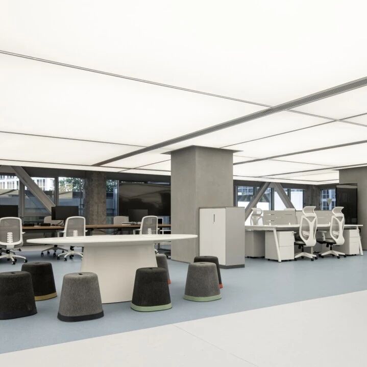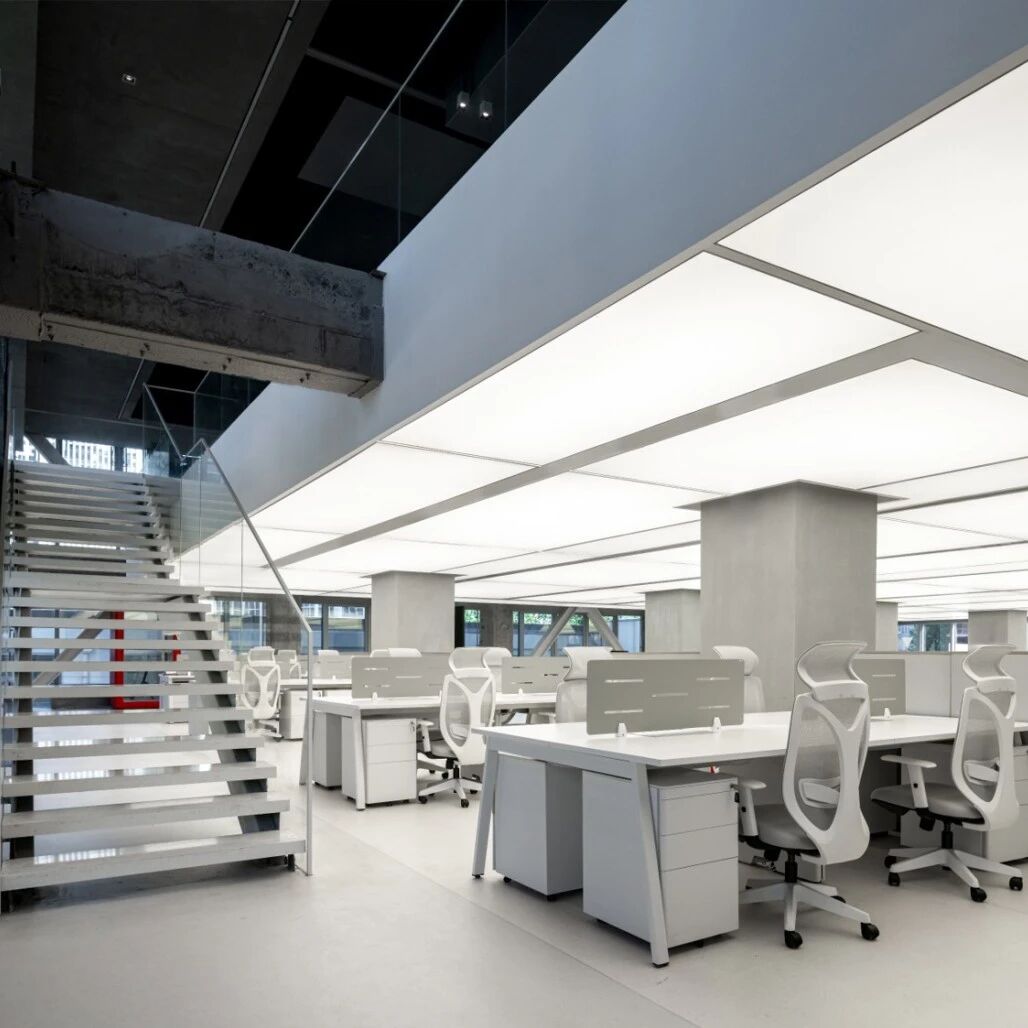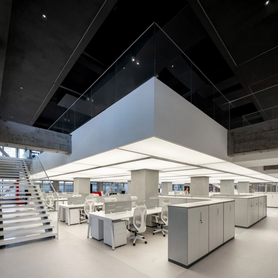 室内设计则针对层高较低的问题,打通三四层部分空间,采用发光膜技术,缓解压抑感,适配年轻人办公需求。整个改造以谦逊姿态回应场地限制,用简洁设计解决核心问题,完美诠释了存量更新时代的建筑态度。