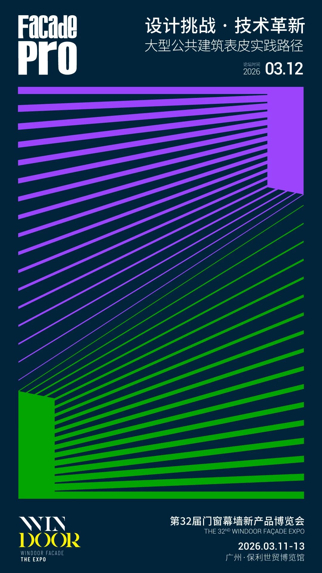 【WINDOOR第32届门窗幕墙新产品博览会】正式定档于2026年3月11-13日广州,聚焦门窗幕墙全产业链新设计、新产品、新材料与新技术,系统呈现建筑外表皮前沿解决方案。