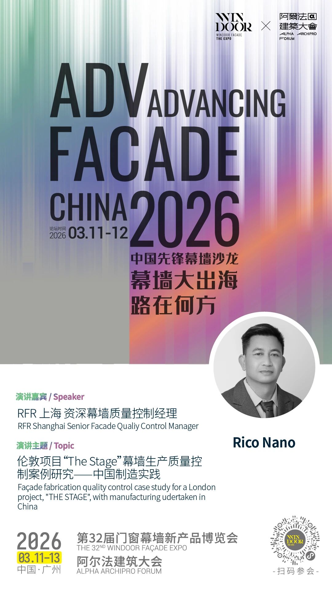 ADVANCING FACADE 是由阿尔法建筑大会与 RFR 共同策划发起的公益性专业活动,致力于搭建全球建筑先锋力量与中国幕墙产业链之间的高质量对话平台。助力中国幕墙行业在全球语境中建立更清晰的话语体系与竞争优势。