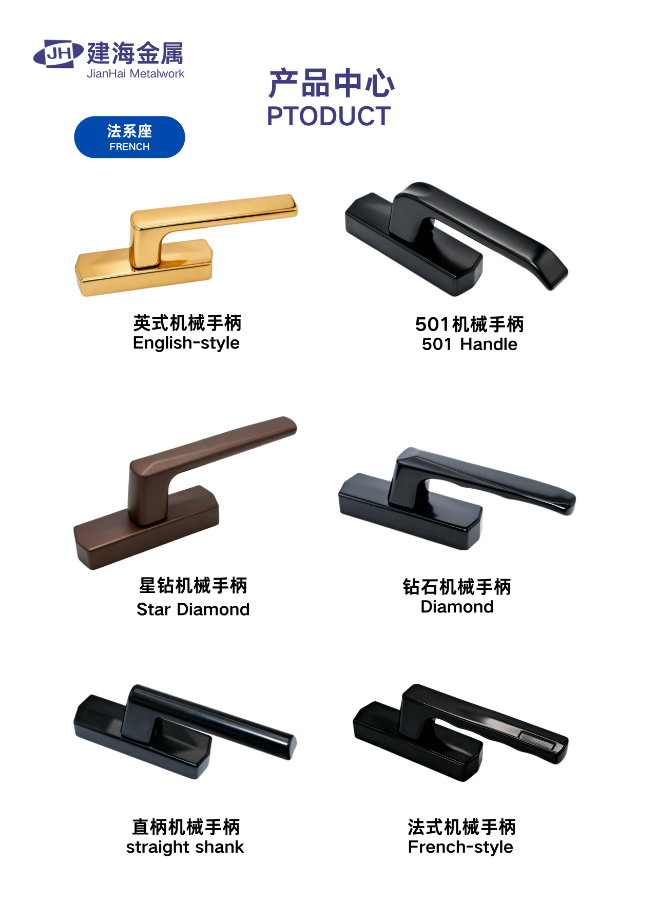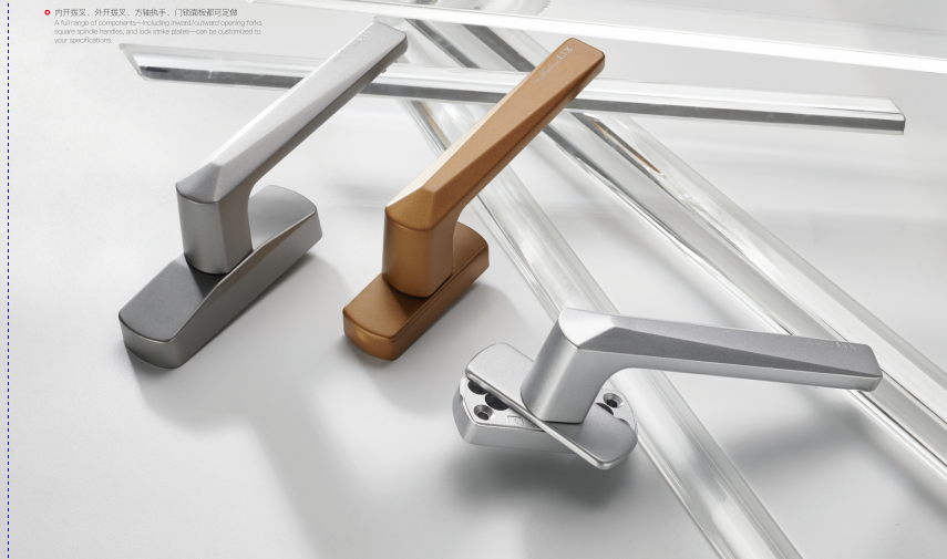 · 主营产品:各类⻔锁、把⼿、合⻚、窗撑、⻆码、插销、轮⼦等⻔窗系统配件