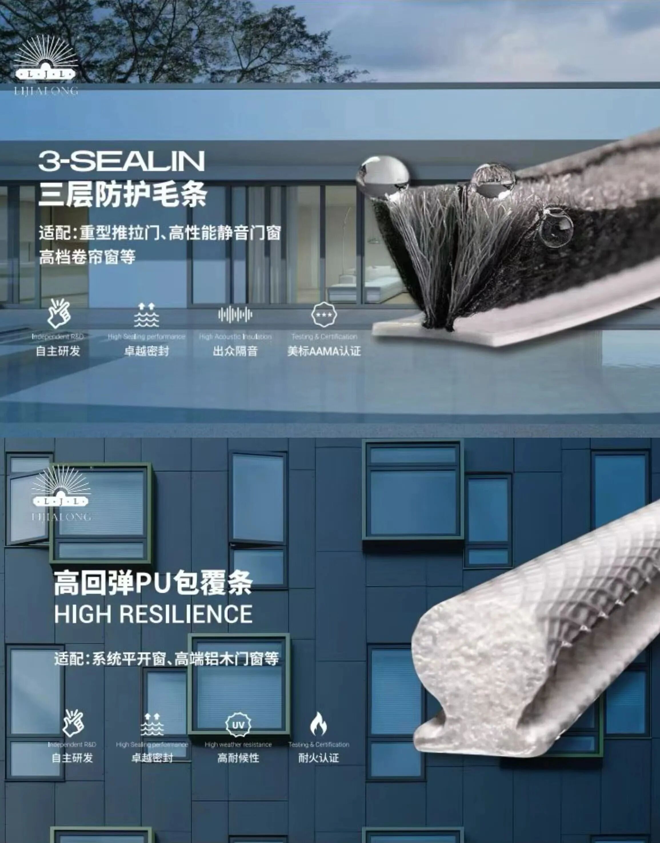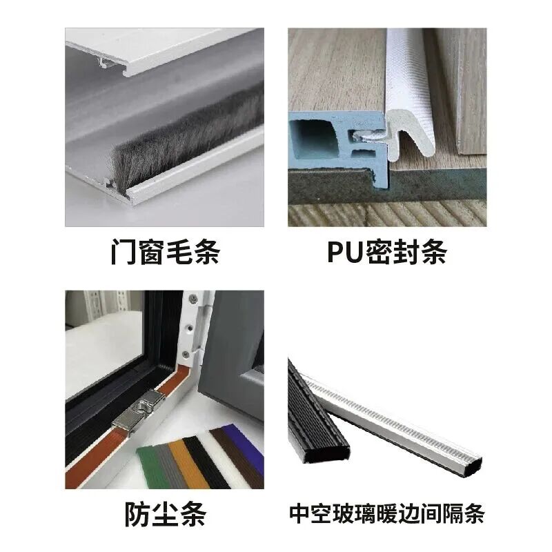 · 主营产品:窗密封毛条、PU包覆式密封条、中空玻璃暖边条、系统门窗防尘条、极窄门玻璃卡条