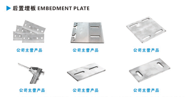 · 主营产品:预埋板,化学锚栓,护栏底座。爪件,雨棚支架,挂件,云石胶,AB胶,结构胶,耐候胶。