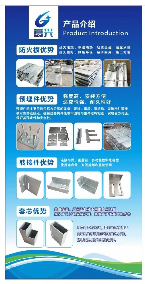 · 主营产品:预埋件、防火铁皮、铁单板、幕墙封修板