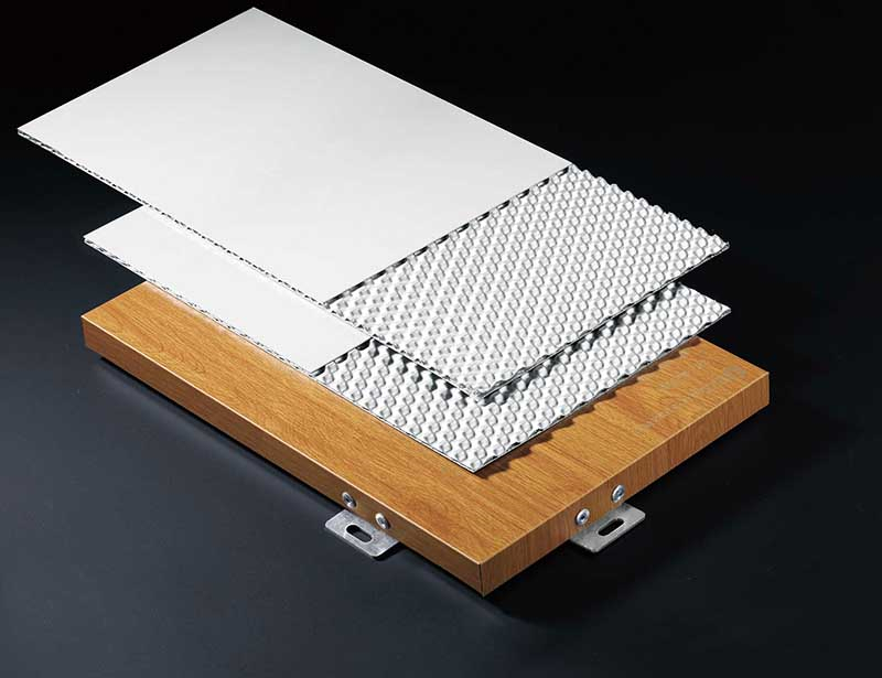 铝三维板采用优质3003铝合金板作为基材,包括底板、三维芯板和面板从下向上依次分布。该板材的铝内芯层经特殊辊模压延,在形成双面凸点过程中,点与点之间在应力作用下,使铝卷金属薄片形成半窝壳状连续性桥拱结构的中间层芯材,经上、底铝卷材复合而成360度(无方向)均匀受力的铝板。具有耐久性、隔热性、轻量性、易加工、A2防火等特点。