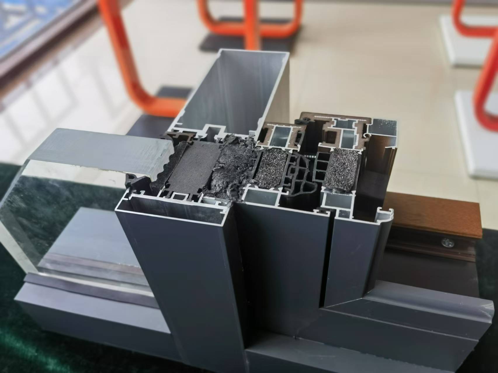 采用复合加模块化的节能设计理念,以多空腔铝合金作基材,在其外表面上用挤出微发泡成型工艺包覆一层微发泡聚氯乙烯材料,二者通过高温挤压包裹而成的一种新型高效复合型材。用该型材制作的门窗不但具有铝合金门窗的强度和精度,还兼具了塑料门窗的保温密封性能,塑料、木门窗的热感,通过转印、覆膜可以具有木门窗的装饰效果,具有良好的隔声性能,满足高等级绿色建筑和被动式超低能耗建筑的性能需求。由于铝合金型材受到塑料覆盖,防腐蚀性能得到极大改善,无需使用昂贵的氟碳喷涂。